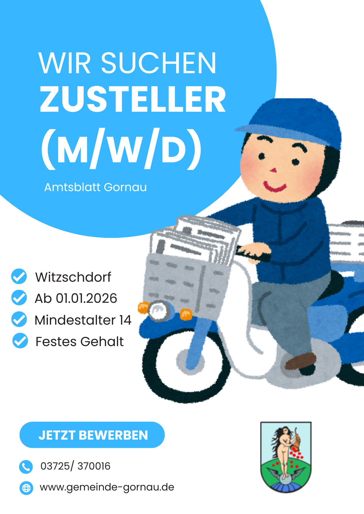 Hier geht es zur Stellenausschreibung: Gemeinde Gornau: Stellenausschreibung